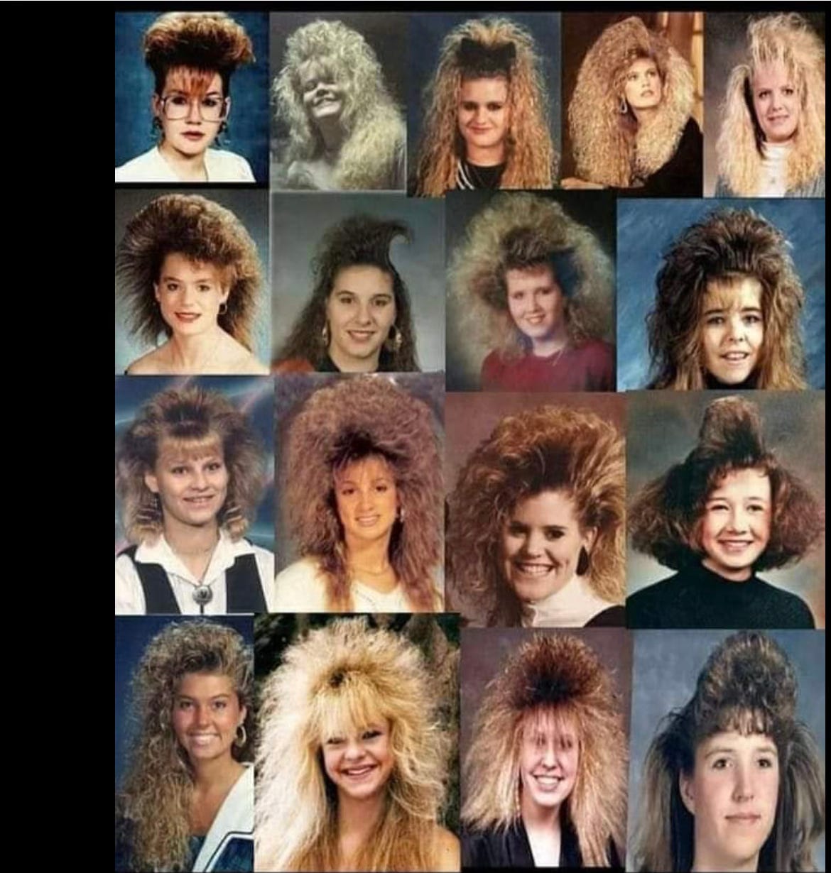 This post comes about after I sent the above photo to my girlfriends. We each indicated which one was closest to our do of the time, and it devolved from there. In case you’re wondering, mine was far right, second from bottom. And to give myself boss status, I grew up mostly in Texas where hair ethos is still “The higher the hair, the closer to god.”